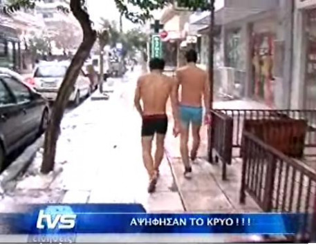 Οι δύο νεαροί αδιαφόρησαν αν θα καταλήξουν στο νοσοκομείο από κρυοπαγήματα ή χιονίστρες. "Το κάναμε για να αποδείξουμε πως στην Ελλάδα δεν κρυώνουμε ποτέ. Ήταν κάτι που το σκεφτόμασταν συνεχώς το τελευταίο διάστημα και μας δόθηκε η ευκαιρία με το σημερινό χιόνι" δήλωσε στον τηλεοπτικό σταθμό της πόλης ΤVS ο ένας ανήλικος.