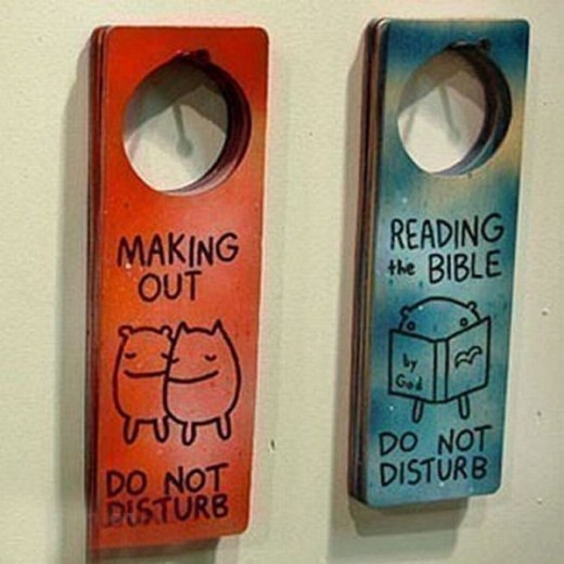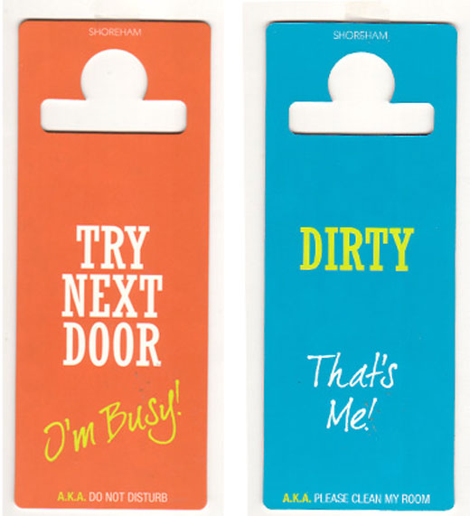 Όλοι μας γνωρίζουμε τα κλασσικά ταμπελάκια στις πόρτες των δωματίων ξενοδοχείων με ενδείξεις τύπου «μην ενοχλείτε» ή «για καθάρισμα». Δεν είναι όμως πολύ βαρετά; Δείτε, λοιπόν, μερικές ιδέες για να σπάει η μονοτονία. Ιδανικά και για το σπίτι ώστε να κρατούν την μαμά μακριά (ορισμένα από αυτά)...